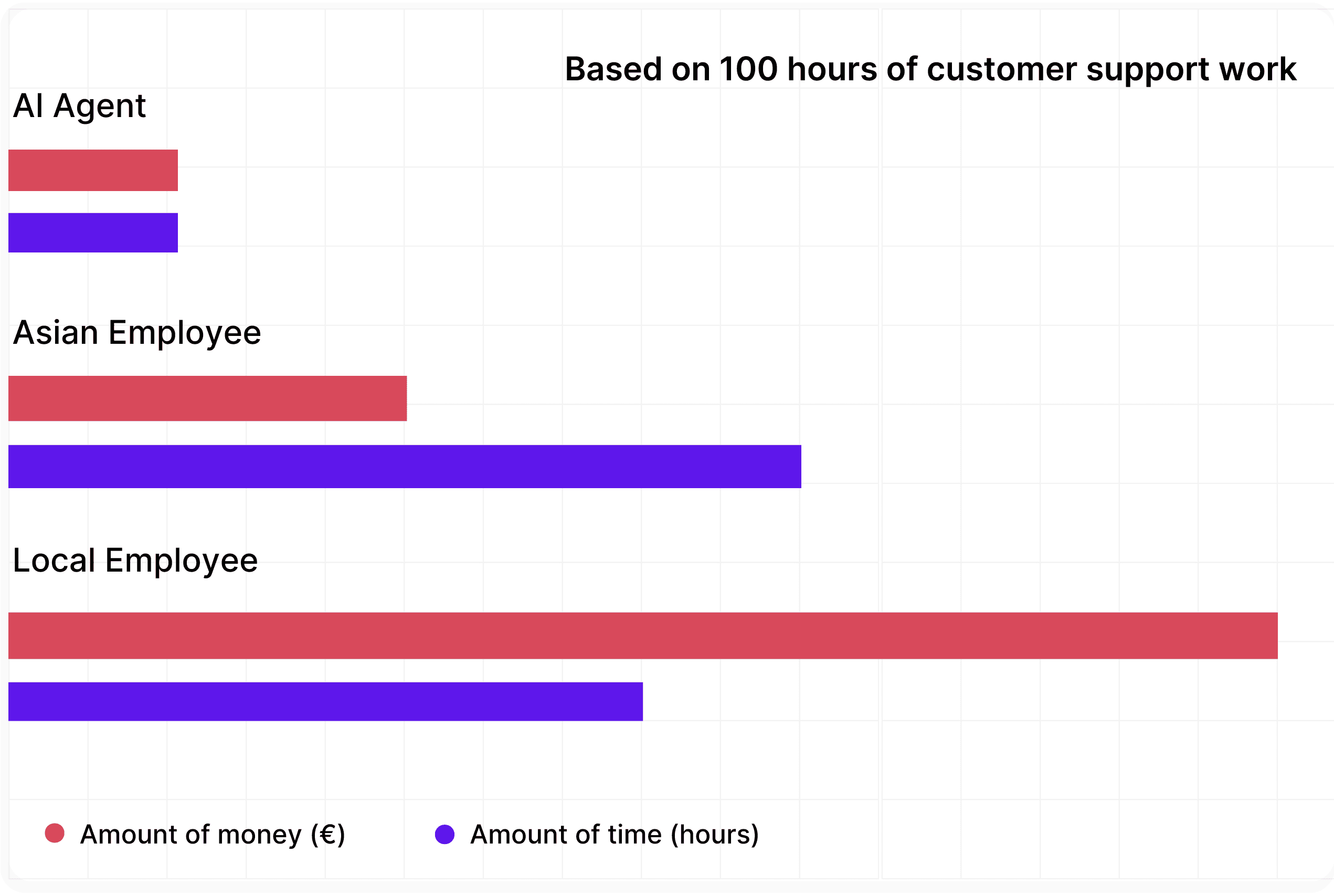 Works 24/7, never sick, never lazy. Human-level replies at a fraction of the cost and even way cheaper than offshore employees from Asia.