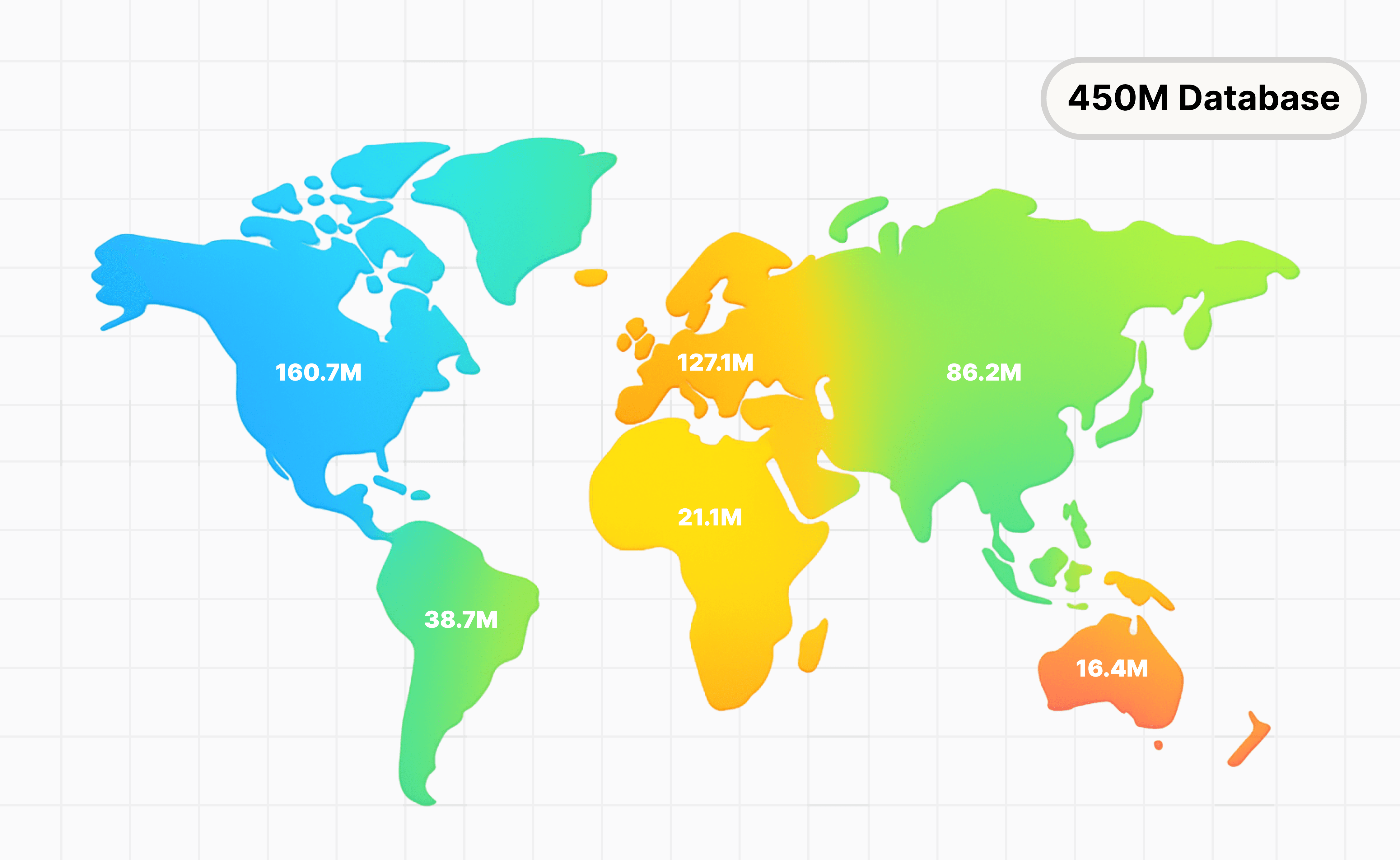 We have a B2B database with over 450M contacts, ready to bring your campaigns and outreach to another level.